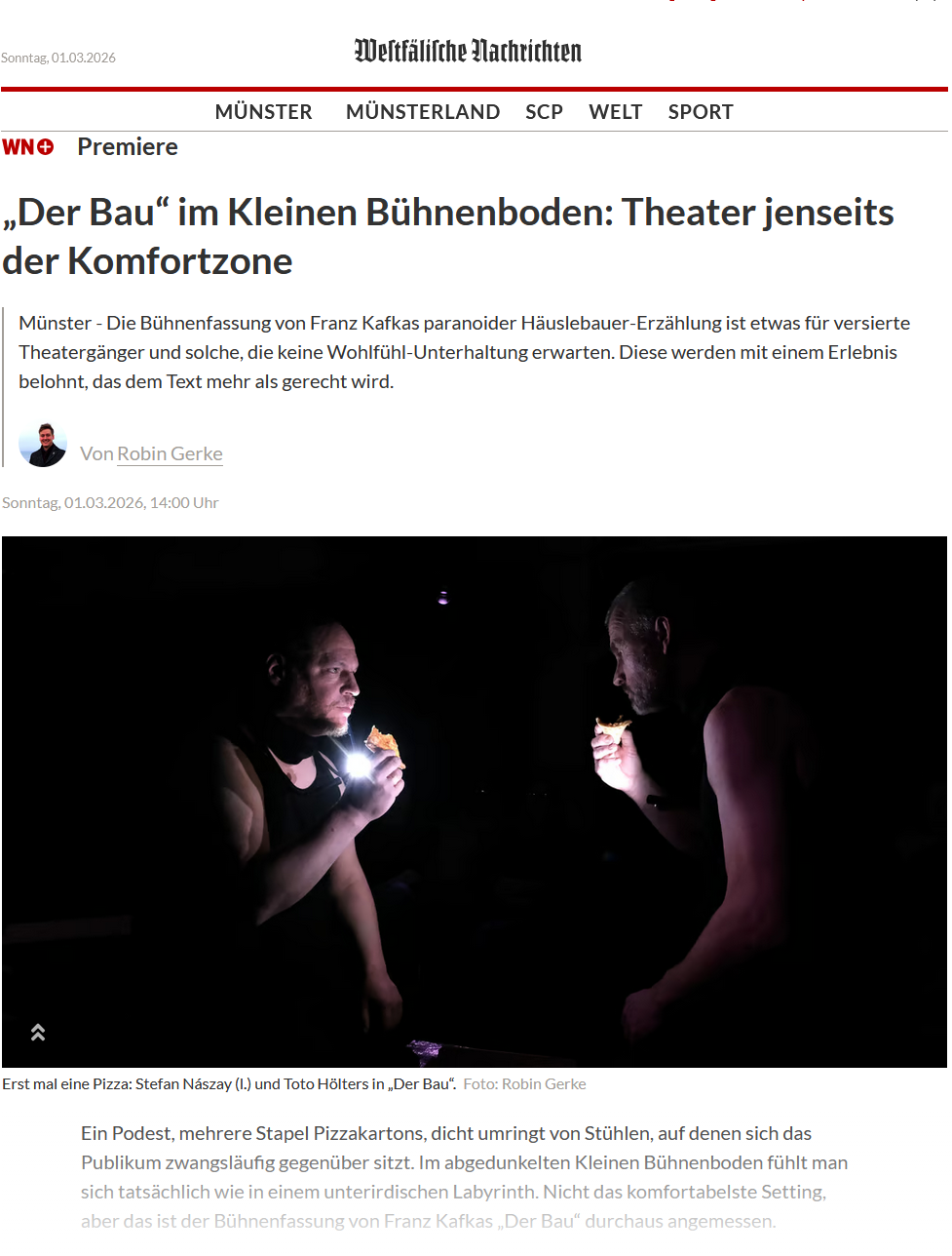 Intensive Inszenierung von DER BAU im Kleinen Bühnenboden / WN, 01.03.2026